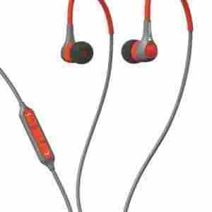 Ten wytrzymały, izolujący hałas zestaw słuchawkowy z mikrofonem i regulatorami na przewodzie wygodnie pozostaje w uszach podczas treningów dzięki regulowanym zaczepom na ucho.