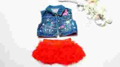 S404| F&F Czerwona TUTU Jeansowa Kamizelka