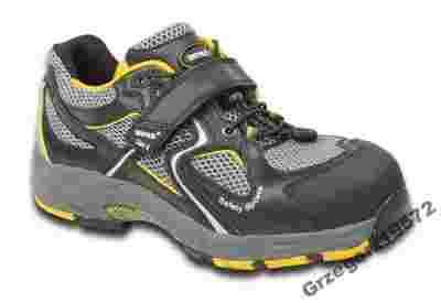 System amortyzujący, który zapewnia dobry komfort chodzenia i zmniejsza obciążenie kolan i pleców. Podnoski wykonane z aluminium. Środkowa podeszwa wykonana z Kevlaru.