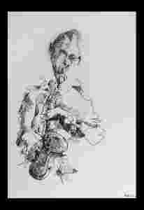 SAKSOFONISTA, saksofon jazz, rysunek, Pracownia mk