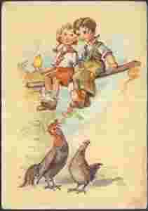 Salac Dzieci na grzędzie kura kogut