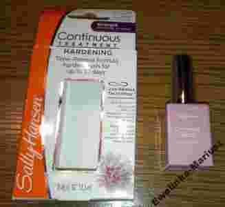 Odżywka polecana do paznokci delikatnych, cienkich, rozwarstwiających się, które potrzebują wzmocnienia i pogrubienia. Formuła odżywki oparta jest na wapnie z korala i kompleksie witaminowo-mineralnym, które odżywiają i wzmacniają paznokcie. Opatentowana technologia Time Release zastosowana w odżywkach Sally Hansen Continuous działa przez długi czas - stale wzmacnia i odżywia paznokcie, a także uwalnia odżywczy kompleks witaminowy. W efekcie zauważysz, że paznokcie stały się wyraźnie twardsze, grubsze, odporne na złamania. Wapń z korala scala wszystkie warstwy ze sobą dzięki czemu paznokcie się wzmacniają i są zabezpieczone przed łamaniem i rozwarstwieniem. Jak używać: Na suche i czyste paznokcie nałóż 1 warstwę preparatu. Czynność powtarzaj codziennie. Po 7 dniach zmyj wszystkie warstwy i rozpocznij kurację od początku.