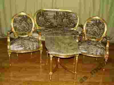 SALONIK komplet sofa,2 fotele,ława ZŁOTY- GOBELIN