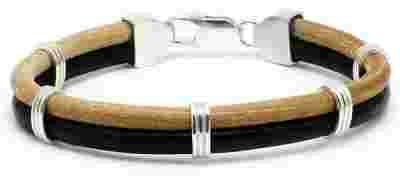 SAMBORA Bransoleta męska z rzemienia i srebra B-01