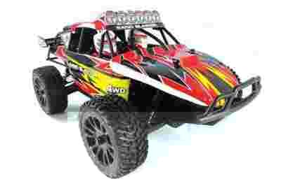 W prezentowanym modelu zastosowano rozwiązania na miarę profesjonalnych samochodów rc, czyli olejowe amortyzatory, regulowane zawieszenie, i mocny serwomechanizm o sile 6kg.