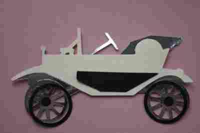 SAMOCHÓD RETRO ecru srebrny -scrapbooking (0011)