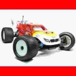 Wymaga dokompletowania we własnym zakresie o: Kompatybilny silnik spalinowy, Min. 2-kanałową aparaturę z odbiornikiem, 2 serwomechanizmy klasy "standard", komplet opon "Truggy".