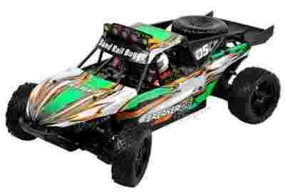 Model posiada ponadto duże, regulowane olejowo-sprężynowe amortyzatory oraz dobrej klasy ogumienie, dzięki czemu świetnie trzyma się podłoża! Wysoko zawieszone podwozie oraz konstrukcja typu sand rail, sprawiają, że jest bardzo zwrotny, stabilny i przede wszystkim wytrzymały! Dzięki tym cechom jest to unikatowy model w skali 1:10 w tej klasie cenowej, chętnie wybierany przez osoby szukające dobrego auta!