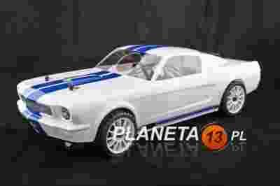 Model VISION EVO z nadwoziem FORD SHELBY MUSTANG GT350 , renomowanego producenta samochodów zdalnie sterowanych GS Racing oparty jest na doskonałej jakości linii produktów spalinowych Vision PRO, wielokrotnego zwycięzcy licznych klasyfikacji on-roadowych na całym świecie. To praktycznie gotowy do użytku po wyjęciu z pudełka, świetnie uzbrojony i doskonale wyposażony RTR dla początkujących modelarzy. Model świetnie łączy w sobie prostotę obsługi i swobodę regulacji ustawień z doskonałej jakości niezawodną mechaniką i nowatorskimi rozwiązaniami technicznymi - w bardzo przystępnej cenie. Jakkolwiek sprawniejszy i bardziej nowoczesny napęd paskowy są raczej kojarzone z najdroższymi na rynku, w pełni rozbudowanymi o opcjonalne części modelami wyścigowymi - to firma GS Racing zainstalowała je jako standardowe wyposażenie do jednego ze swoich "podstawowych" modeli. Jeśli dodamy do tego pełne precyzyjne ołożyskowanie, wycinaną laserowo podwójną aluminiową ramę główną, utwardzane amortyzatory olejowe z regulowanym skokiem, wodoszczelną puszkę z fabrycznie zamontowanym mocnym regulatorem obrotów, spoiler dociskający tylną oś oraz wyciętą i pomalowaną na licencji znanych producentów samochodów leksanową budę, to w nasze ręce trafi wyjątkowo bogato jak na tę klasę wyposażony RTR ze sportowym zacięciem i możliwościami rozbudowy, jakich nie daje praktycznie żaden Touring Car produkowany przez konkurencyjne firmy. Zdecydowanie polecamy szczególnie początkującym modelarzom samochodowym szukających solidnego, a jednocześnie szybkiego modelu dającego wiele radości z jazdy, przy minimalnych nakładach pracy i pieniędzy. W kwestii stabilności auta na trasie, wszyscy testerzy są zdania że nawet amatorzy nie powinni mieć problemu z utrzymaniem auta w ryzach - doskonała mechanika i stabilizacja układu jezdnego stosowana w modelach GS Racing jest bowiem absolutnym standardem już od lat. Silnik szczotkowy 540 rozpędza auto do prędkości 50 km/h. Istnieje jednak zawsze możliwość konwersji podstawowego silnika szczotkowego na napęd bezszczotkowy. Oprócz fabrycznie zamontowanego mocnego serwomechanizmu odpowiadającego za skręt kół, w zestawie znajduje się 2-kanałowe proporcjonalne radio na 27MHz oraz zestaw kluczy i podkładek do regulacji oraz ewentualnego demontażu modelu.