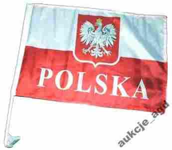 Samochodowa flaga Polski 45 x 30 z godłem + uchwyt