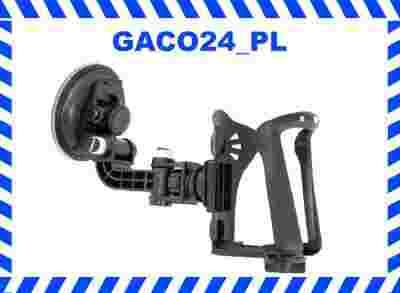 Samochodowy uchwyt do napojów montowany za pomocą przyssawki do szyby samochodowej.