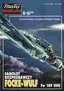 WSPANIAŁY,REWELACYJNY MODEL SAMOLOTU FOCKE-WULF Fw 189 "UHU" WYDAWNICTWA MAŁY MODELARZ W SKALI 1:33