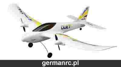 Chętnie spróbowalibyście jak steruje się samolotem rc, a nie chcecie wydawać zbyt dużo pieniędzy? To właśnie dla Was jest Duet, gotowy model z nadajnikiem i akumulatorem napędowym. Wszystko potrzebne znajduje się w zestawie, wystarczy doładować akumulator i możecie startować. Posiada funkcję "Asystent Lotu", która wspomoże Was podczas pierwszych prób lotu.