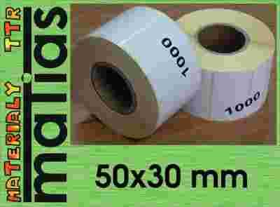 Przedmiotem Aukcji są Etykiety Białe Samoprzylepne termiczne papierowe na kleju mocnym (nieodlepnym) o wymiarach 50x30 mm.