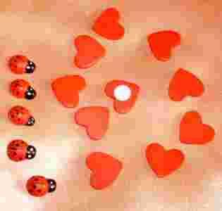 Samoprzylepny komplet=10 serduszek+5 biedronek