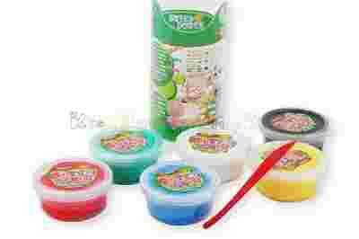 Zestaw zawiera 6 pudełeczek (o wymiarach 8,5cm x 4 cm) mieszczących po 40g samoutwardzalnej masy SUPER DOUGH w kolorach: żółty, zielony, czarny, czerwony, niebieski i biały. Do zestawu dołączona jest plastikowa szpatułka ułatwiająca modelowanie.