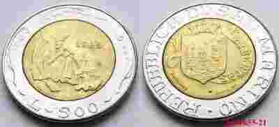 SAN MARINO 500 LIRE 1989 RZEŹBIARZ BIMETAL UNC