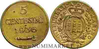 San Marino, 5 centesimi, 1936 rok, kopia