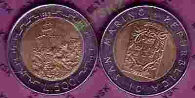 SAN MARINO /KM-226/ 500 LIRÓW 1988 r. Bimetal