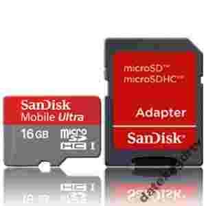 Przedmiotem aukcji jest nowa karta pamięci MicroSD seria Mobile Ultra MicroSDHC UHS-I class 6 o pojemności 16GB oraz adapter MicroSD-->SD firmy Sandisk.
