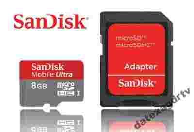Przedmiotem aukcji jest nowa karta pamięci MicroSD seria Mobile Ultra MicroSDHC UHS-I class 6 o pojemności 8GB oraz adapter MicroSD-->SD firmy Sandisk.