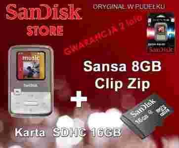 SanDisk MP3 8GB Sansa Clip Zip Grey + karat 16GB