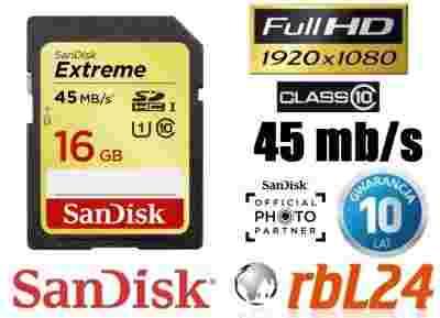 SANDISK SDHC EXTREME 16GB 45 MB/S KRAKÓW CLASS 10