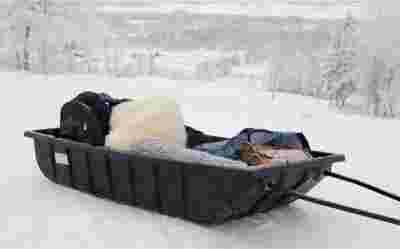 Masywne sanki transportowe do zastosowania np. za skuterem śnieżnym lub quadem.