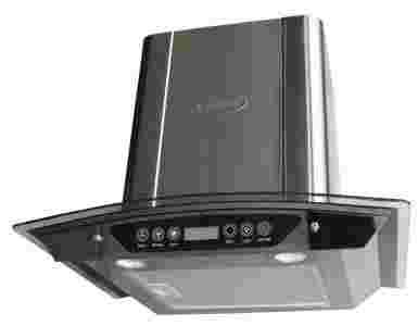 okap wykonany jest z giętego szkła hartowanego oraz szlifowanej stali nierdzewnej, a jego wydajność to