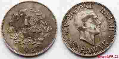 SARAWAK 10 CENT 1927 H C.V. BROOKE RAJAH RZADKOŚĆ!