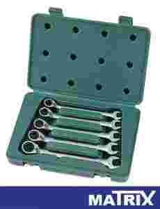 ZESTAW 5 CZĘŚCIOWY KLUCZY PŁASKO - OCZKOWYCH Z PRZEŁĄCZNIKIEM KIERUNKU I GRZECHOTKĄ.
