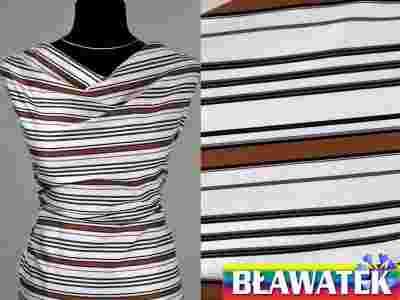 Satyna elastyczna, biel, paski beż, SUPERCENA