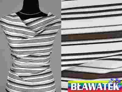 Satyna elastyczna, biel, paski brąz, SUPERCENA