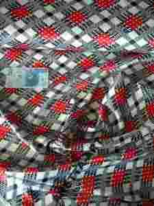 SATYNA GRUBA Z LYCRĄ ROMBY czerwień biel czerń