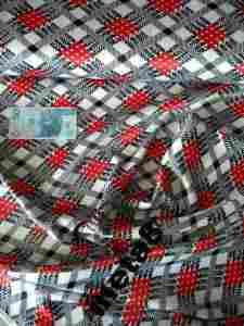 SATYNA GRUBA Z LYCRĄ ROMBY czerwień biel czerń