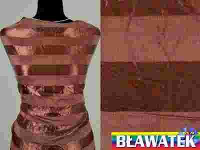 Przedmiotem aukcji jest piękna satyna w pasy idące po długości materiału w kolorze brązowym. Tkanina jest zwiewna, delikatna, nieprześwitująca, bardzo miła w dotyku, ładnie się nosi i układa, lejąca, prawie się nie gniecie, cienka, delikatnie połyskująca.