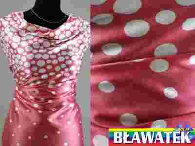 Przedmiotem aukcji jest piękna satyna w groszki i grochy po obu stronach szerokości. Tkanina jest zwiewna, delikatna, miła w dotyku, ładnie się nosi i układa, delikatnie połyskująca.