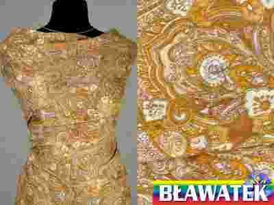 Satyna, turecki wzór, złoty, wiskoza