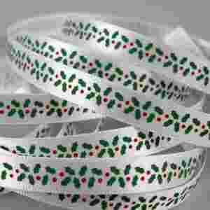 Satynowa wstążka z listkami 10mm/1m - KOLORY