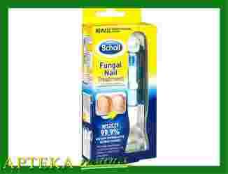 Dla osób które cierpią i wstydzą się grzybicy paznokci oraz martwią się o rozprzestrzenianie się infekcji. Rewolucyjna, skuteczna i łatwa w użyciu kuracja. Właściwości: SCHOLL FUNGAL NAIL TREATMENT preparat przeciwgrzybiczny do stosowania przy grzybicy: * niszczy 99,9% grzybów powodujących grzybicę paznokci, * pomaga zapobiegać rozprzestrzenianiu się infekcji i nawrotom zakażenia, * 5 pilniczków jednorazowego użytku - przetestowane klinicznie. Łagodnie usuwają wierzchnią warstwę zainfekowanego paznokcia. * mechanizm ograniczający możliwość włożenia zużytego pilniczka z powrotem, co zapobiega rozprzestrzenianiu się infekcji, * preparaty przeciwgrzybiczny o zaawansowanej recepturze, która wnika w głąb paznokcia niszcząc infekcję u źródeł jej powstania. Na koniec fazy 1 zmniejszają się przebarwienia płytki paznokcia. Po 9-12 miesiącach, czyli w okresie, który odpowiada przeciętnej długości całkowitego wzrostu ludzkiego paznokcia, przebarwienia znikną i paznokcie wrócą do normalnego stanu bez śladów infekcji grzybiczej Wskazania Fungal Nail Treatment marki Scholl jest odpowiedni do leczenia łagodniejszych form grzybicy paznokci. Sposób użycia: Unikalna, łatwa w użyciu kuracja składająca się z 2 faz: * Faza 1 – etap leczniczy (4 tygodnie) – w tej fazie niszczone są grzyby powodujące grzybicę paznokci - Raz w tygodniu delikatnie spiłuj powierzchnię zainfekowanego paznokcia - Po użyciu wyrzuć pilniczek, aby nie rozprzestrzenić zakażenia - Nakładaj preparat przeciwgrzybiczny w postaci płynu codziennie - Powtarzaj czynności z pierwszego tygodnia przez tydzień 2, 3 i 4. W razie potrzeby użyj zamiennych pilników * Faza 2 – etap ochronny (9 miesięcy) – faza druga ma zapewnić ochronę przed rozprzestrzenianiem się infekcji i pomóc w zapobieganiu nawrotom zakażenia. - Nakładaj preparat pędzelkiem na zainfekowane paznokcie raz w tygodniu przez okres 9 miesięcy lub do czasu gdy przebarwienia odrosną i pojawi się nowa płytka paznokciowa.