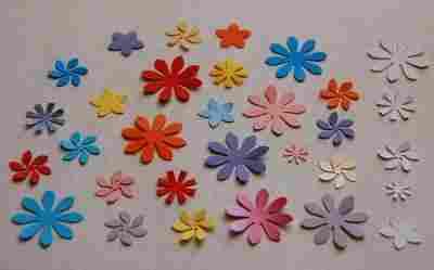 Aukcja dotyczy scrapków w kształcie kwiatków - 5 rodzajów.