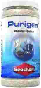 Purigen to super jakości syntetyczny adsorbent. Produkt przewyższa inne tego typu produkty dostępne na rynku. Za sprawą substancji o właściwościach wchłaniających polimer wychwytuje zanieczyszczenia z wody. Szybkość działania oraz wydajność przebija podobne produkty o 500 %. Purigen usuwa ze zbiornika amoniak, azotany i azotyny, bez pozbawiania wody cennych pierwiastków. Woda nabiera krystalicznej przejrzystości. Purigen przeznaczony do akwariów morskich i słodkowodnych, w miarę zużywania się zmienia barwę na brązową. Wydajność: Dzięki dużej powierzchni granulek, Purigen jest wyjątkowo wydajny i ma wysoką zdolność gromadzenia zanieczyszczeń. Wszystkie dostępne na rynku żywice mają postać kulek o gładkiej powierzchni, co można zobaczyć pod mikroskopem. Kuliste granulki Purigenu charakteryzują się dużą porowatością, wielokrotnie zwiększającą powierzchnię kontaktu z wodą. Sposób użycia Przed użyciem przepłukać w wodzie. 250ml Purigenu wystarczy do oczyszczania około 1000 l wody przez pół roku.