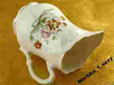 Mlecznik wykonany z doskonałej jakości porcelany w kolorze bieli,zdobiony efektownym motywem roślinnym i wzbogacony wyczuwalnym przepięknym reliefem.Całość wykonana bardzo solidnie i estetycznie co sprawia,że obiekt prezentuje się uroczo.Wspaniały i niesłychanie wdzięczny artykuł do postawienia na starym kredensie w celach dekoracyjnych!!