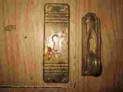 Secesyjny mosiężny szyld,komoda,biurko,szafka