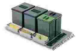 SEGREGATOR NA ŚMIECI DO SZUFLADY Z FRONTEM O SZEROKOŚCI 900mm FIRMY DEMOS,POSIADA CZTERY POJEMNIKI Z CZEGO DWA SĄ 16 LITROWE A DWA 7,5 LITROWE