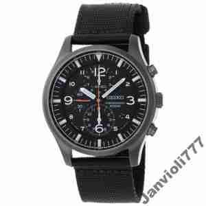 Brand Name: Seiko Model number: SNDA65 Part Number: SNDA65 Item Shape: round Dial window material type: hardlex Display Type: analog Clasp: Buckle Case material: fabric-strap Case diameter: 44.00 Case Thickness: 12.00 Band material: fabric-strap Band length: mens Band width: 21 millimeters Band Color: black Dial color: black Bezel material: stainless-steel Bezel Function: stationary Calendar: Date Special Features: water-resistant Movement: japanese-quartz Water resistant depth: 330 Feet