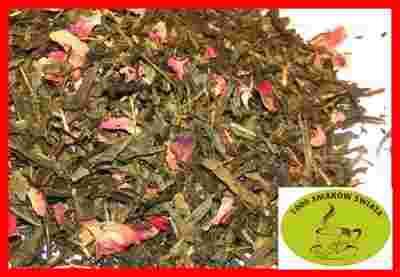 Herbata zielona o smaku różanym.