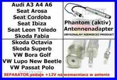 Audi, Seat, VW, Skoda. Wszystkie modele ze starym wyjściem antenowym typu Fajka - ISO |