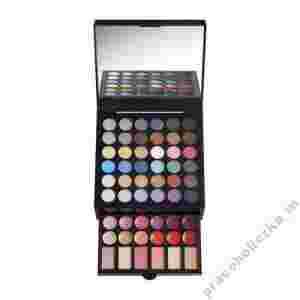 - 36 cieni do powiek od odcieni naturalnych do kolorowych. - 12 błyszczyków do ust. - 6 różów do policzków.