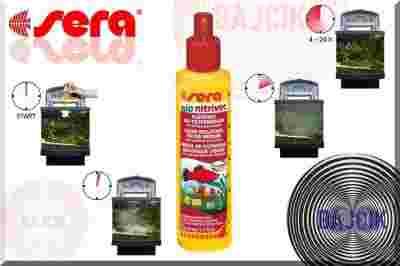 Niebezpieczne, toksyczne związki amoniaku i azotynu są stale wytwarzane w wodzie akwariowej. SERA BIO NITRIVEC, biotechnologiczny produkt, zawiera miliony bakterii czyszczących, które pomagają stworzyć biologiczną równowagę w akwarium, występujące w wodzie toksyczne substancje są stale usuwane i ulegają rozkładowi. Dodatek mineralnej skały wulkanicznej zapewnia odpowiednie warunki do osiedlania się bakterii czyszczących, dzięki ktrórym usuwane są zanieczyszczenia i zmętnienie, woda staje się zdrowa, czysta i biologicznie aktywna. Preparat pozwala zasiedlić akwarium rybami już po 24 godzinach, jeśli jest stosowany w połączeniu z SERA AQUATAN!
